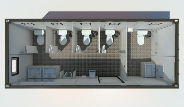 Container vệ sinh (toilet) 20 feet có chiều dài 6m chiều rộng 2,5m có thể ngăn làm 4 phòng vệ sinh riêng biệt. Container vệ sinh 20 feet được có tính tiện dụng cao, được ưa chuộng, làm nhà vệ sinh tại các công xưởng, công ty, công trường xây dựng,…Công trình có khả năng di động dễ dàng di chuyển, hơn nữa giá thành rẻ, dễ dàng thi công lắp đặt.